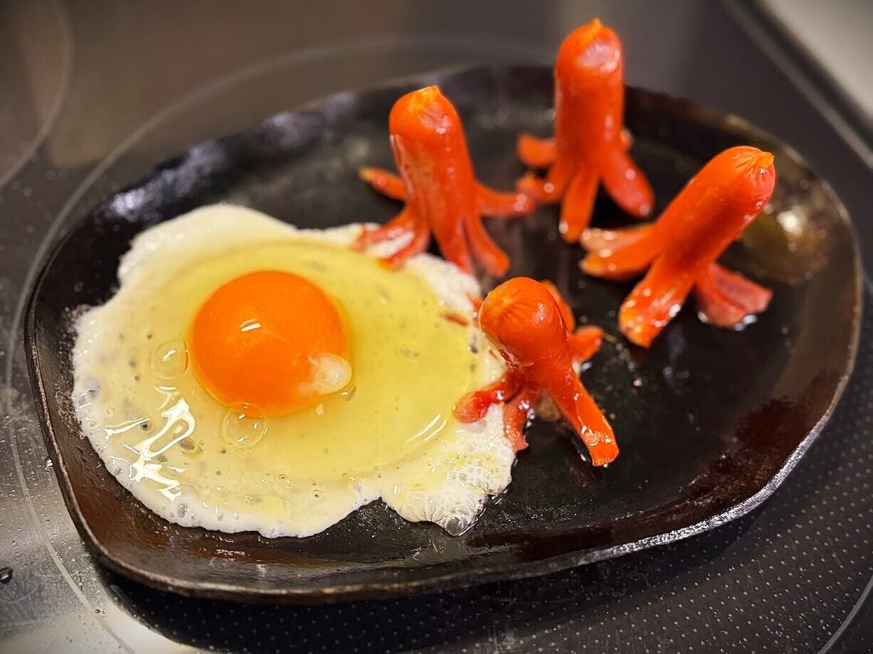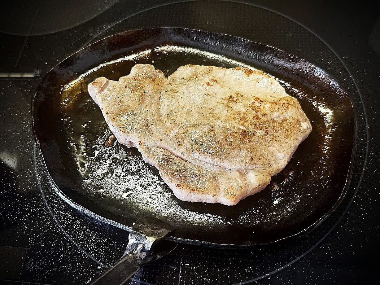 まず、全体を高温に温め(焼く、という方が近いです)、食用油を薄く塗り拡げます。