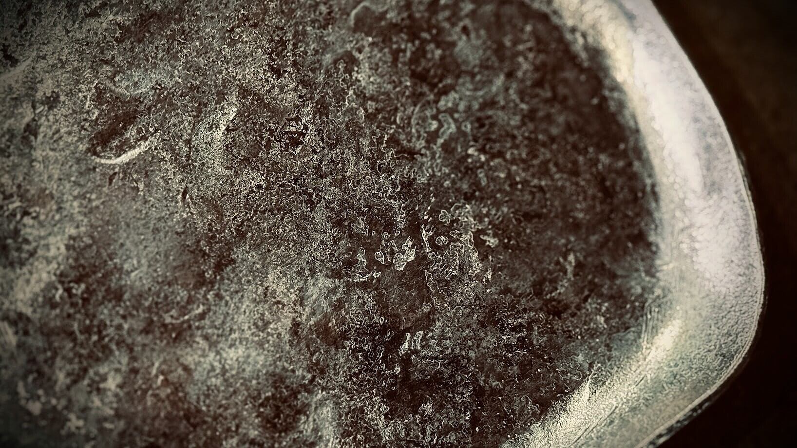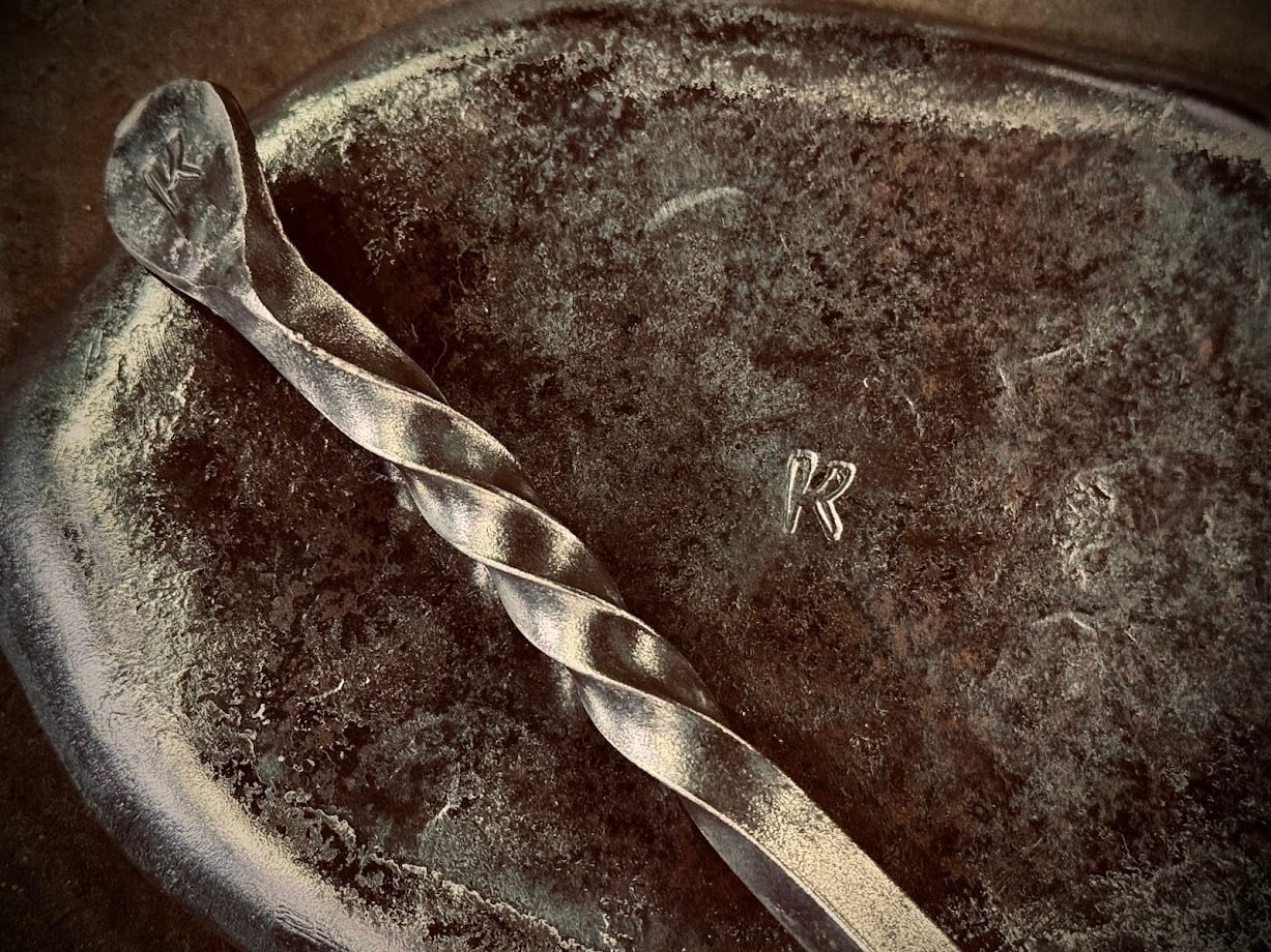 黒皮鉄板を鍛造し、ワイヤブラシでスラグを落とした状態なので、そのままだと焼いた肉や食材が焦げ付きますし、濡らして置いたらサビが発生します。