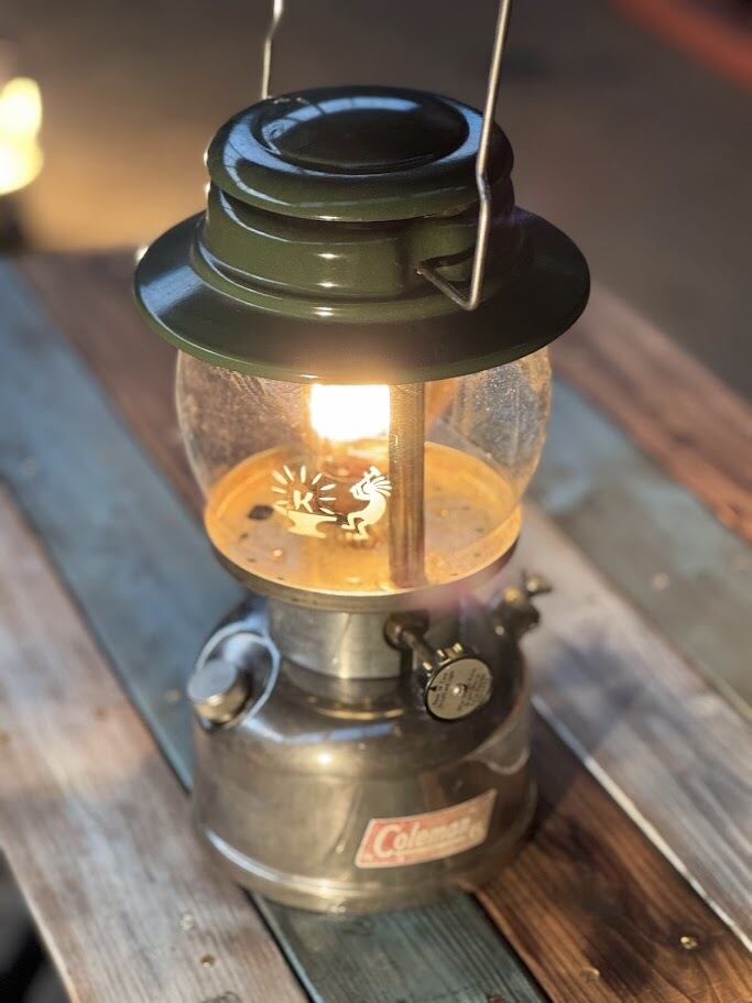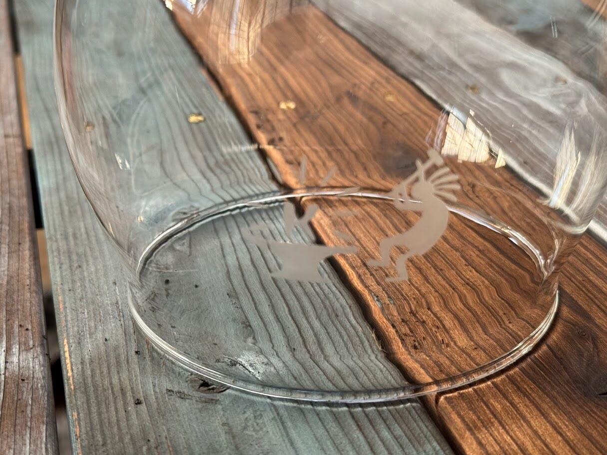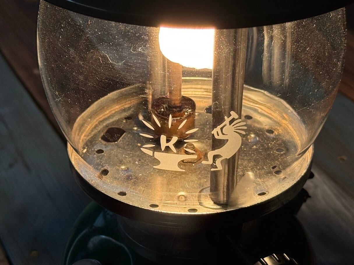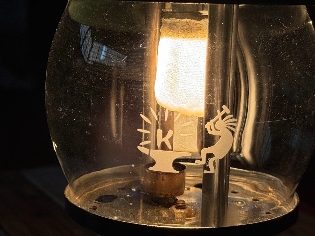 コールマンのランタン用グローブ#4タイプにKokopelli Iron/ココペリ・アイアンのトレードマークをサンドブラスト加工しました。